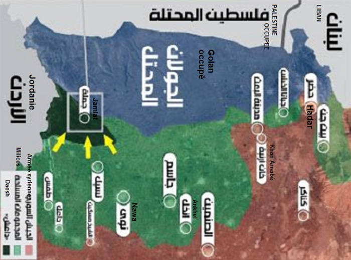 Mapa ukazuje rozlohou teroristické zelené, že Izraeli se prozatím podařilo vybudovat tzv. "buffer zone" za pomocí teroristů, které vozí do svých nemocnic na Golanech. Ale je jisté, že Hizballáh, íránské gardy a SAA tuto situaci nenechají jen tak. Pád Aleppa a západní Ghúty uvolnil asi 10 tisíc vojáků, kteří z velké části půjdou proti Turkovi a proti ISILu na prolomení obklíčení v Deir es Zauru. Ale silný kontingent půjde do Dáráje, kde začne osvobozování území, které je nyní pod kontrolou teroristů podporovaných Izraelem. Proto začala tzv. "syrská opozice" preventivně vykřikovat, že je třeba se spojit s Izraelem v boji proti Asadovi. Reálnou válku musí předcházet metání mediálních dýmovnic, aby se zdejší ovčané masírovaní korporátkami pořádně zmátli.