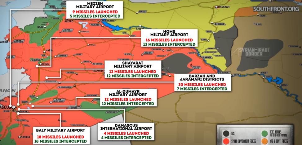 - 12 missiles were launched at the Al-Dumayr Military Airport. All these missiles were intercepted.