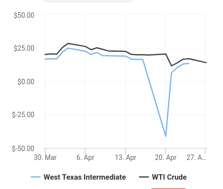 Kamarády šokoval propad ropy na -40.32 dolarů za barel minulé úterý. To znamenalo v praxi, že pokud jste koupili do 20. dubna nejméně 1000 barelů West Texas Intermediate, tak vám zaplatili 40 dolarů za barel, ale surovou ropu jste si museli z terminálu okamžitě odvést. Jinak řečeno, mohl jste si natankovat benzínku surovou ropou úplně zadarmo a ještě vám přidali kompletní cenu benzínu k tomu. Nekup to, ale nekoupíš. Šlo o surovou ropu a pouze na jediném US-terminálu Cushing, Oklahoma, který byl spekulativně nacpaný k prasknutí. Společnosti převzaly povinnost nakoupit velké množství ropy West Texas Intermediate za určitou cenu. Cena nabízená prodejci vypadala v době podpisu smlouvy levně. Datum vypořádání smluv bylo 21. dubna. Obvykle jsou takové kontakty vypořádány v penězích, ale tentokrát prodejci trvali na fyzickém dodání ropy kupujícím. Důvod byl jasný, prodělali kalhoty a potřebovali se zbavit drahé ropy. Kupující neměli skladovací kapacitu, aby mohli přijmout ropu, kterou koupili před několika měsíci. Nyní museli fyzicky přijmout velké množství, které nemohli nikam umístit. Jedinou cestou bylo okamžitě to prodat někomu jinému. Ale nikdo neměl zájem, cena ropy stále klesala. Všichni měli svou úložnou kapacitu již naplněnou po okraj. Společnosti s povinností přijmout ropu od producentů proto nutně nabídli, že zaplatí ostatním, aby si vzali ropu, ale hned. Tak vznikl perfektní model neoliberální ekonomiky: "Dejte mi tisícovku a já vás nechám naplnit mou nádrž u auta." Nejenže nedám tisícovku za benzín, ale ještě tisícovku dostanu, když si benzín okamžitě vezmu.